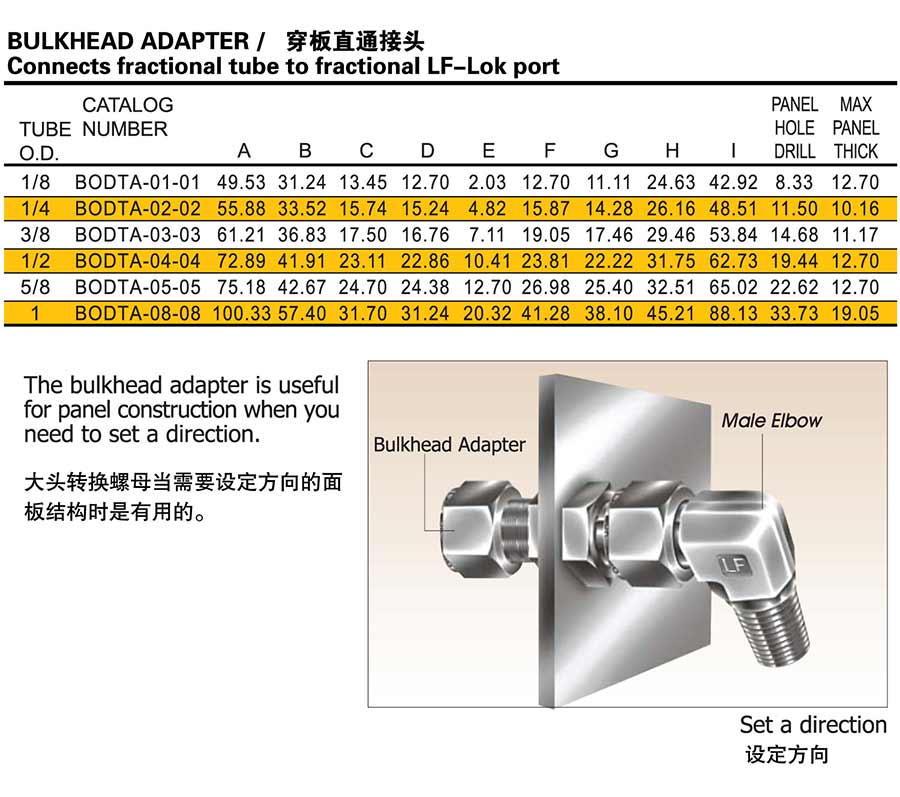 / BODTA型卡套式穿板直通接头
