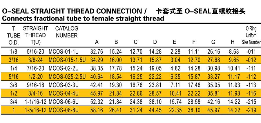 / MCOS型卡套式至O-SEAL直螺纹接头